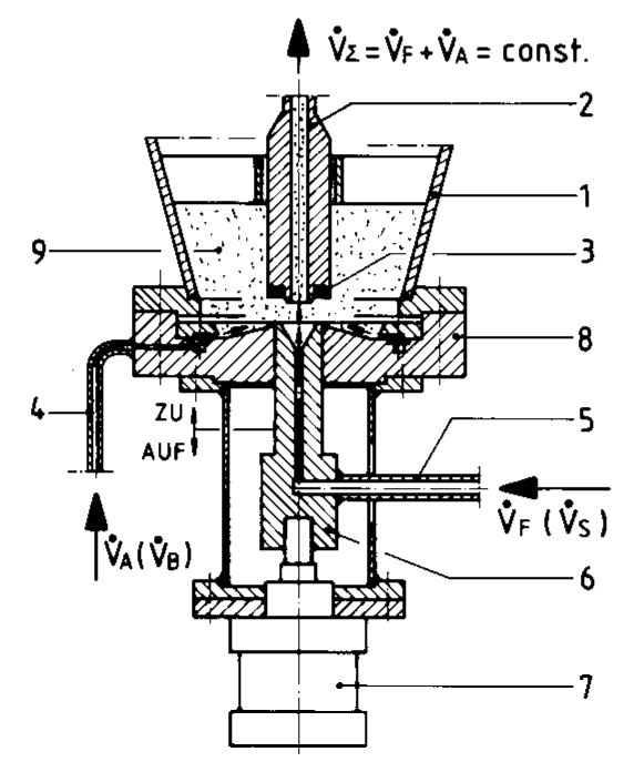 - Die Aufteilung der zugeführten Gas-menge in zwei Teilgasströme (Austragsgas VA und Fördergas VF)